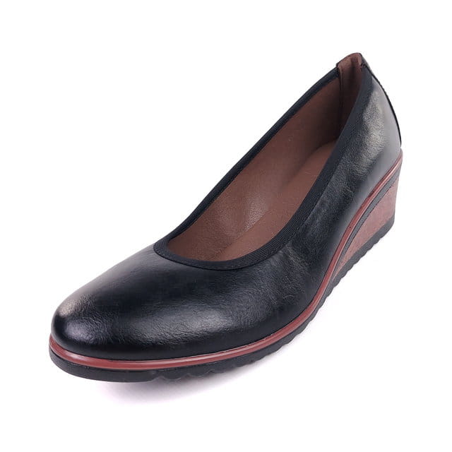 Ponadczasowe i komfortowe półbuty damskie na koturnie marki Potocki. Cholewka wykonana ze skóry ekologicznej w kolorze czarnym. Miękka wkładka ze skóry naturalnej na lateksowej piance. Lekka i miękka podeszwa podnosi komfort użytkowania, koturn o wysokości 5 cm. Cholewka wykończona jest elastyczną lamówką, która ładnie układa się wokół stopy. Obuwie idealne do codziennego użytkowania.