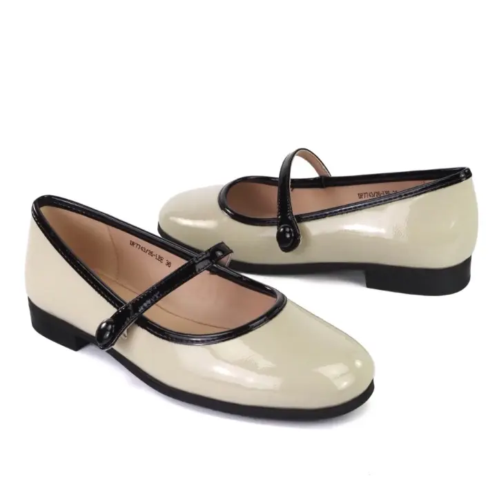 Beżowe, modne i gustowne półbuty damskie typu baleriny znanej marki Filippo. Cholewka wykonana jest z wysokiej jakości i miękkości skóry naturalnej lakierowanej w kolorze beżowym. Komfortowa wkładka jest miękka i skórzana. Buty są wkładane, a pasek jest na gumkę. Tegość G. Podeszwa jest lekka, elastyczna i trwała. Zgrabny obcas ma wysokość 2 cm. Beżowa cholewka połączona z czarnym paseczkiem i lamówką podkreśla niekonwencjonalny i efektowny charakter butów. Stylowe i wygodne baleriny będą pasować do wielu stylizacji. Kobiecy szyk...