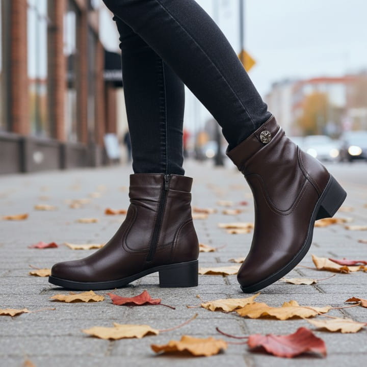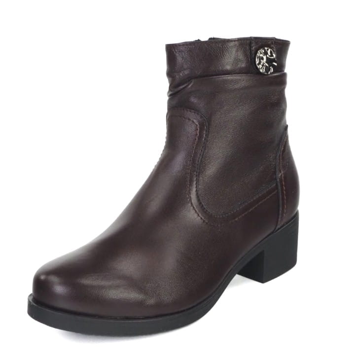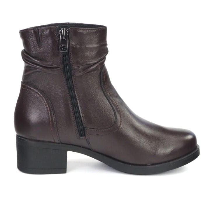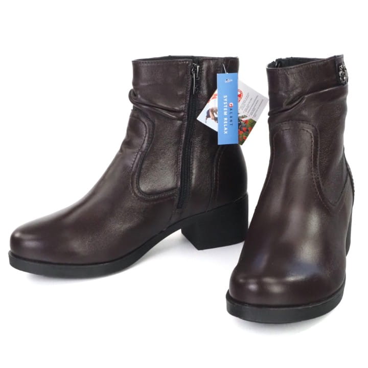 Bordowe i eleganckie botki damskie polskiej marki Galant. Cholewka wykonana z wysokiej jakości i miękkości skóry naturalnej licowej w ładnym, bordowym kolorze. Wnętrze botka jest solidnie ocieplone futerkiem. Obuwie posiada wygodny i stabilny obcas o wysokości 5 cm. Podeszwa SYSTEM RELAX jest komfortowa, elastyczna i trwała. Cholewka jest delikatnie zmarszczona i ma ładną ozdobę z boku. Buty zapinane są na suwak z boku. Tęgość G1/2. Ponadczasowe, lekkie i komfortowe botki sprawdzą się w codziennym użytkowaniu.