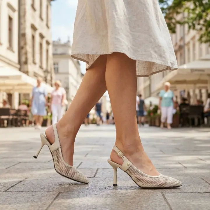 odkrytą piętą znanej polskiej firmy Maciejka. Cholewka