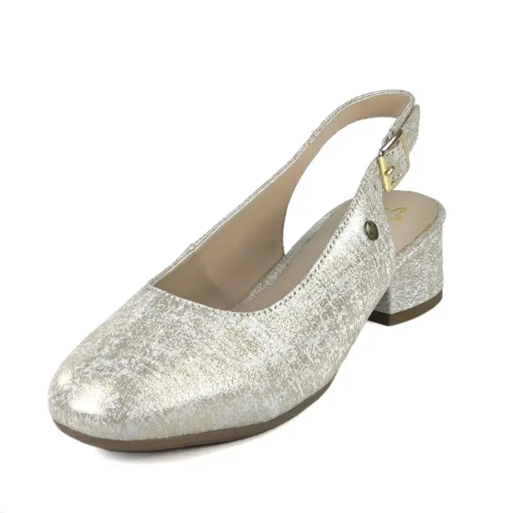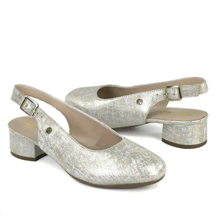 Beżowo-złote, eleganckie i modne czółenka damskie typu sandały znanej polskiej marki Maciejka. Cholewka wykonana jest z wysokiej jakości i miękkości skóry naturalnej licowej w ładnym kolorze beżowo-złotym. Komfortowa, miękka wkładka jest ze skóry naturalnej. Buty są zapinane na klamerkę z boku. Podeszwa jest wysokiej trwałości i miękkości. Wygodny obcas ma wysokość 3,5 cm. Złoty przecierany kolor zwiększa atrakcyjny wygląd butów. Ponadczasowe i szykowne czółenka sprawdzą się w codziennym użytkowaniu i nie tylko...