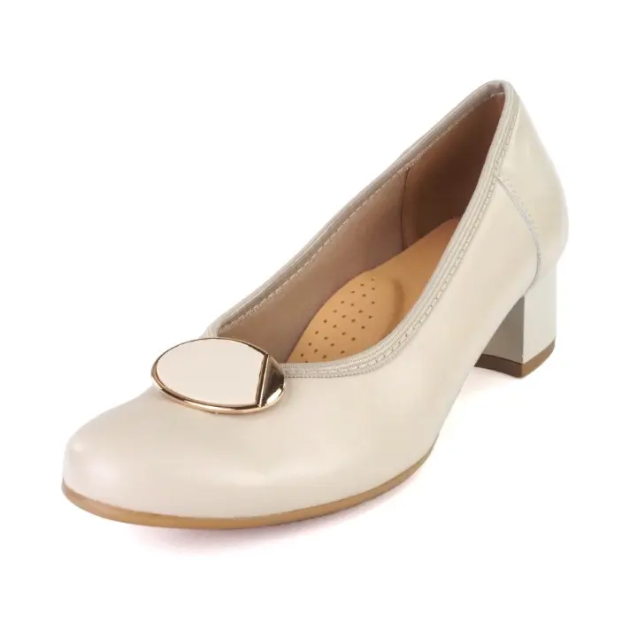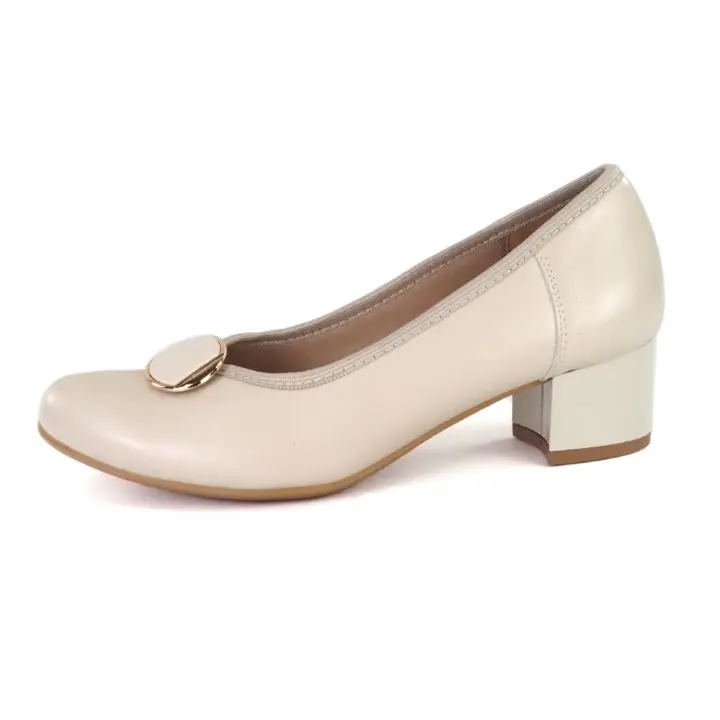 Beżowe i eleganckie półbuty damskie znanej polskiej firmy Galant. Cholewka jest wykonana z wysokiej jakości i miękkości skóry naturalnej licowej w kolorze beżowym. Delikatna ozdoba z przodu, zwiększa elegancki wygląd. W półbutach zastosowano wkładkę skórzaną RELAX SYSTEM, która podwyższa wygodę i komfort noszenia. Podeszwa jest bardzo miękka, elastyczna i trwała. Wygodny obcas ma 4,5 cm , sprawdzi się w codziennym użytkowaniu. Ładnie wykrojona cholewka wysmukla stopę. Inspirowane najgorętszymi trendami sezonu, pięknie prezentują się na nodze. Kobiecy styl.