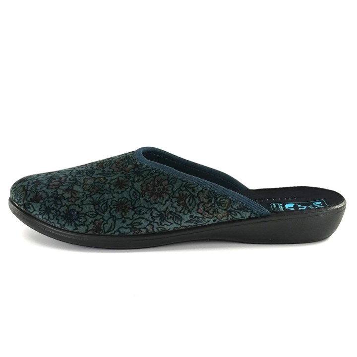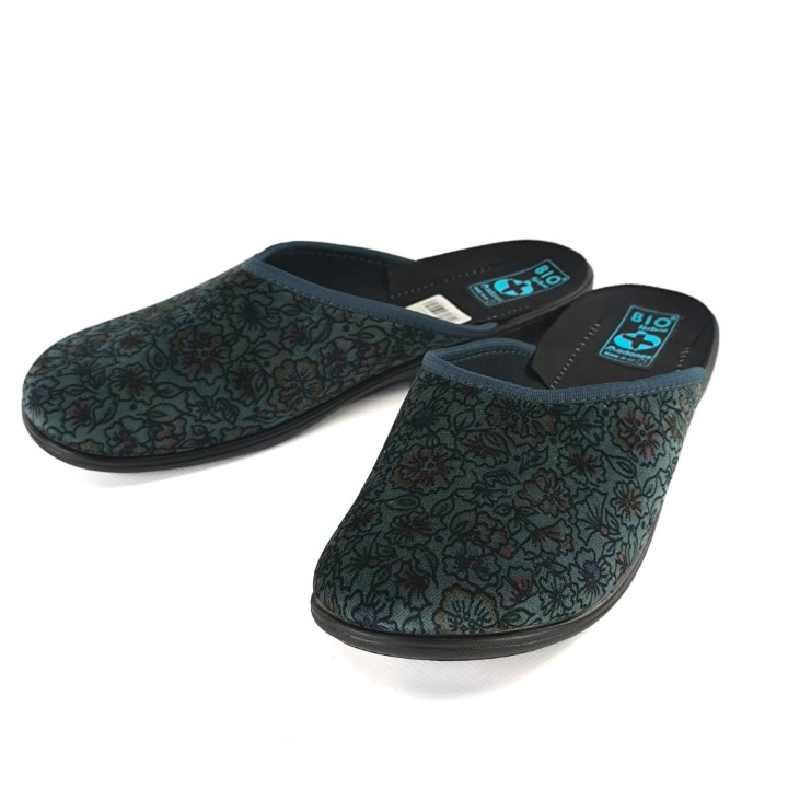 Lekkie i wygodne kapcie damskie BIO polskiej produkcji marki Adanex. Cholewka, wyściółka i wkładka są z wysokiej jakości i miękkości materiału tekstylnego. Cholewka to przyjemny materiał welurowy. Komfortowa podeszwa DIANA jest z lekkiego i elastycznego tworzywa PU odpornego na poślizg i ścieranie, ANATOMIC - dopasowana do kształtu stopy - odpowiednio wyprofilowana zapewnia komfortowe użytkowanie oraz SHOCK ABSORPTION POINT - amortyzacja wstrząsów. Idealne pantofle do użytku domowego i na zewnątrz. Kapcie są w kolorze zielonym w delikatne kwiatki.