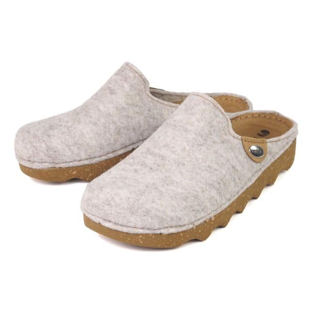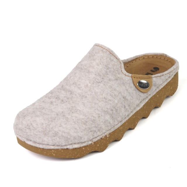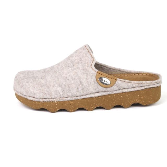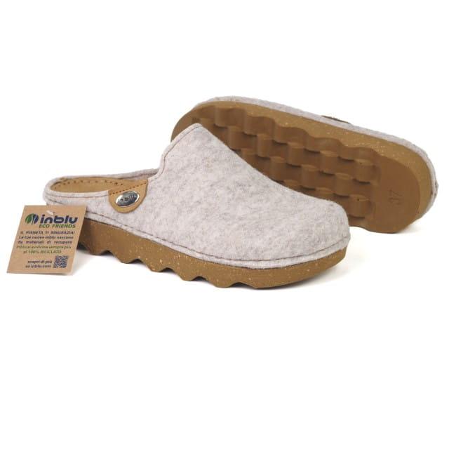 Filcowe beżowe kapcie domowe znanej firmy Inblu. Cholewka i wyściółka są wykonane z najwyższej jakości ekologicznej tkaniny filcowej, która dobrze przepuszcza powietrze. Wkładka " COMFORT ANATOMICO " jest wykonana z miękkiej i naturalnej skóry, jest profilowana, dostosowana do anatomicznego kształtu stopy. Spód dwuwarstwowy wykonany z lekkiego i elastycznego tworzywa, zapewnia sprężystość i bardzo dobre przenoszenie obciążeń na podłoże. Komfortowe chodaki są elastyczne, lekkie, trwałe i dość szerokie. Modne i ładne kapcie idealne na co dzień.