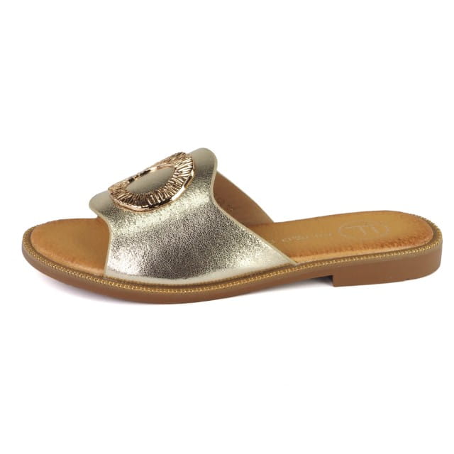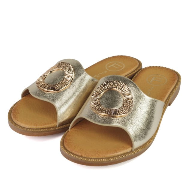 Buty mają śliczną, złotą ozdobę z przodu. Podeszwa jest