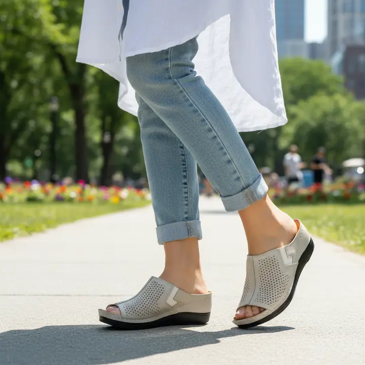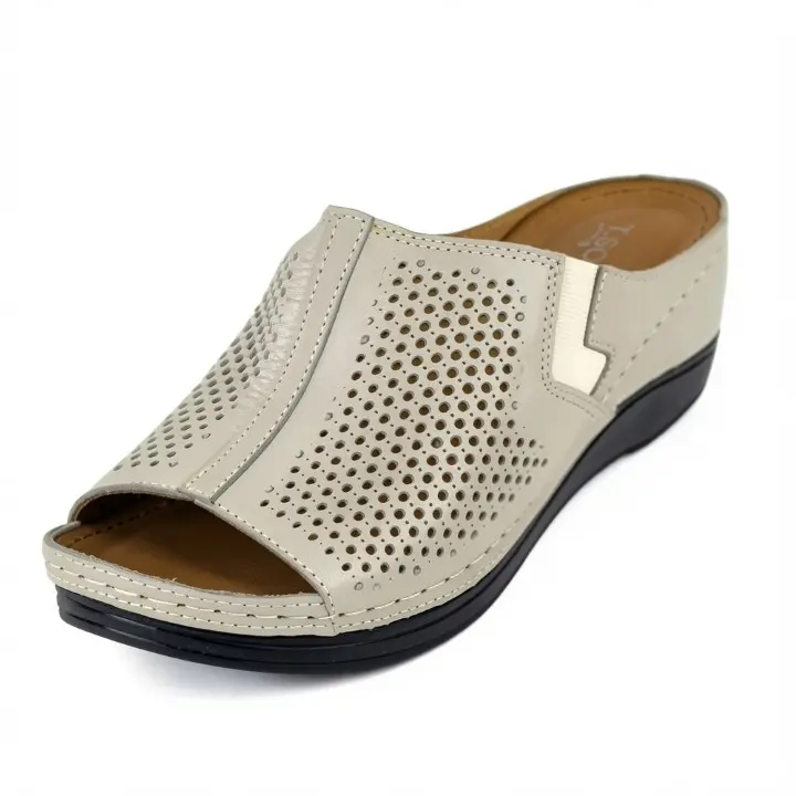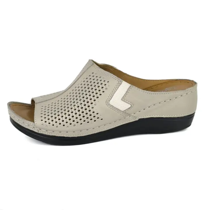 Skórzane, ażurowe klapki damskie