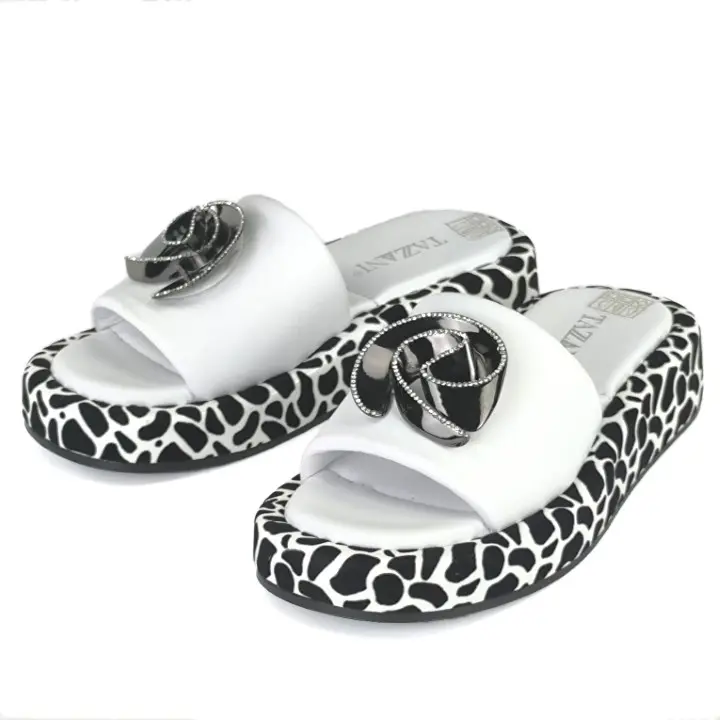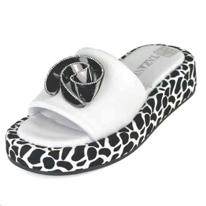 Skórzane klapki z piękną ozdobą na platformie