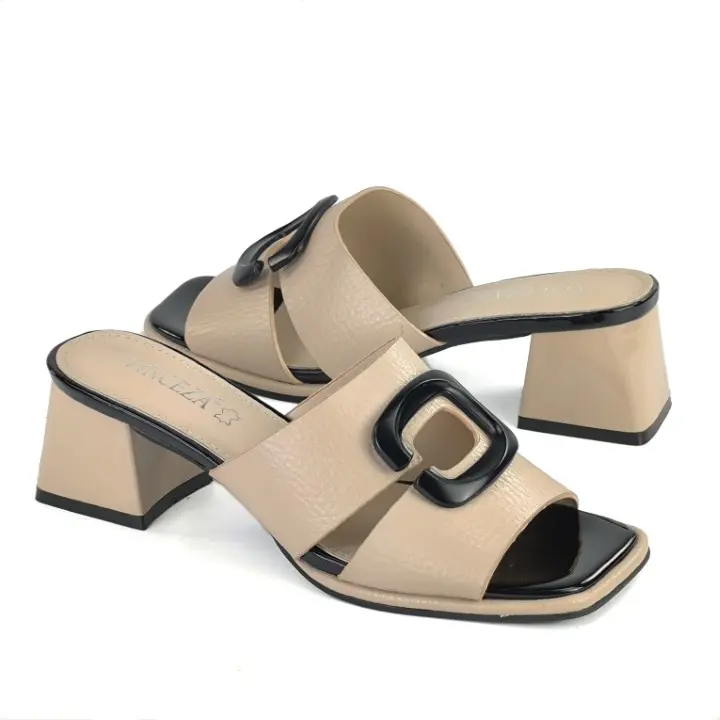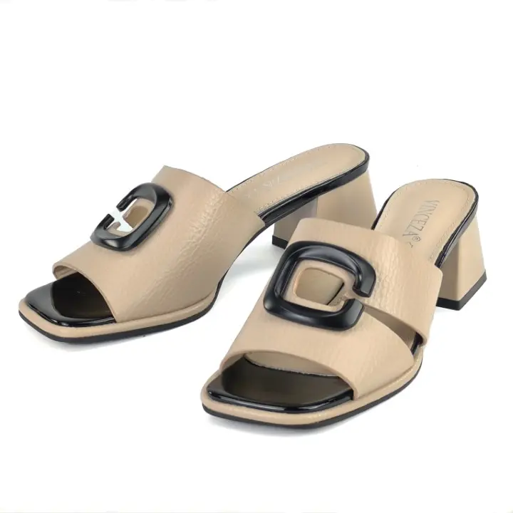 Beżowe, szykowne i wygodne klapki damskie znanej marki Vinceza. Cholewka jest wykonana z wysokiej jakości skóry ekologicznej w kolorze beżowym. Miękka wkładka jest ze skóry naturalnej. Podeszwa jest solidna i trwała. Elegancki obcas ma wysokość 5,5 cm. Gustowna ozdoba z przodu i czarny otok podeszwy zwiększają atrakcyjny wygląd. Inspirowane najgorętszymi trendami sezonu, pięknie wyglądają na stopie. Idealne klapki do codziennego użytku i nie tylko...