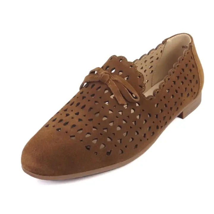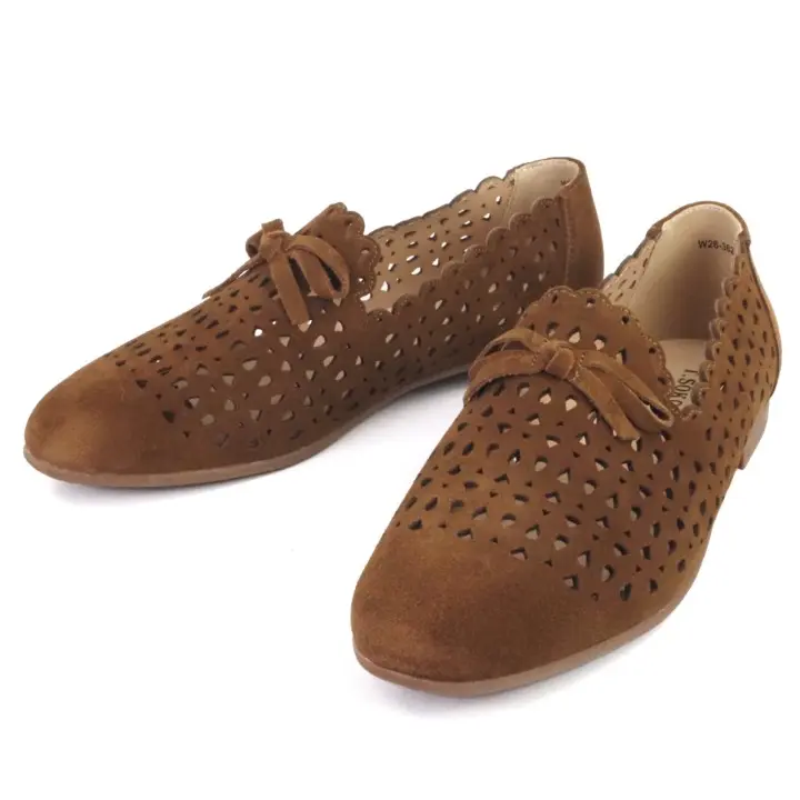 Brązowe, stylowe i komfortowe półbuty damskie typu mokasyny znanej marki T. Sokolski. Ażurowa cholewka jest wykonana z wysokiej jakości i miękkości skóry naturalnej zamszowej w kolorze brązowym. Wkładka jest miękka ze skóry naturalnej. Modna podeszwa jest elastyczna i trwała. Obcas ma wysokość 1,5 cm. Buty są wsuwane. Delikatna ozdoba z przodu oraz ciekawa ażurowa cholewka, sprawia, że mokasyny będą pasować do wielu stylizacji. Modne i bardzo wygodne mokasyny sprawdzą się w codziennym użytkowaniu od wiosny do jesieni.