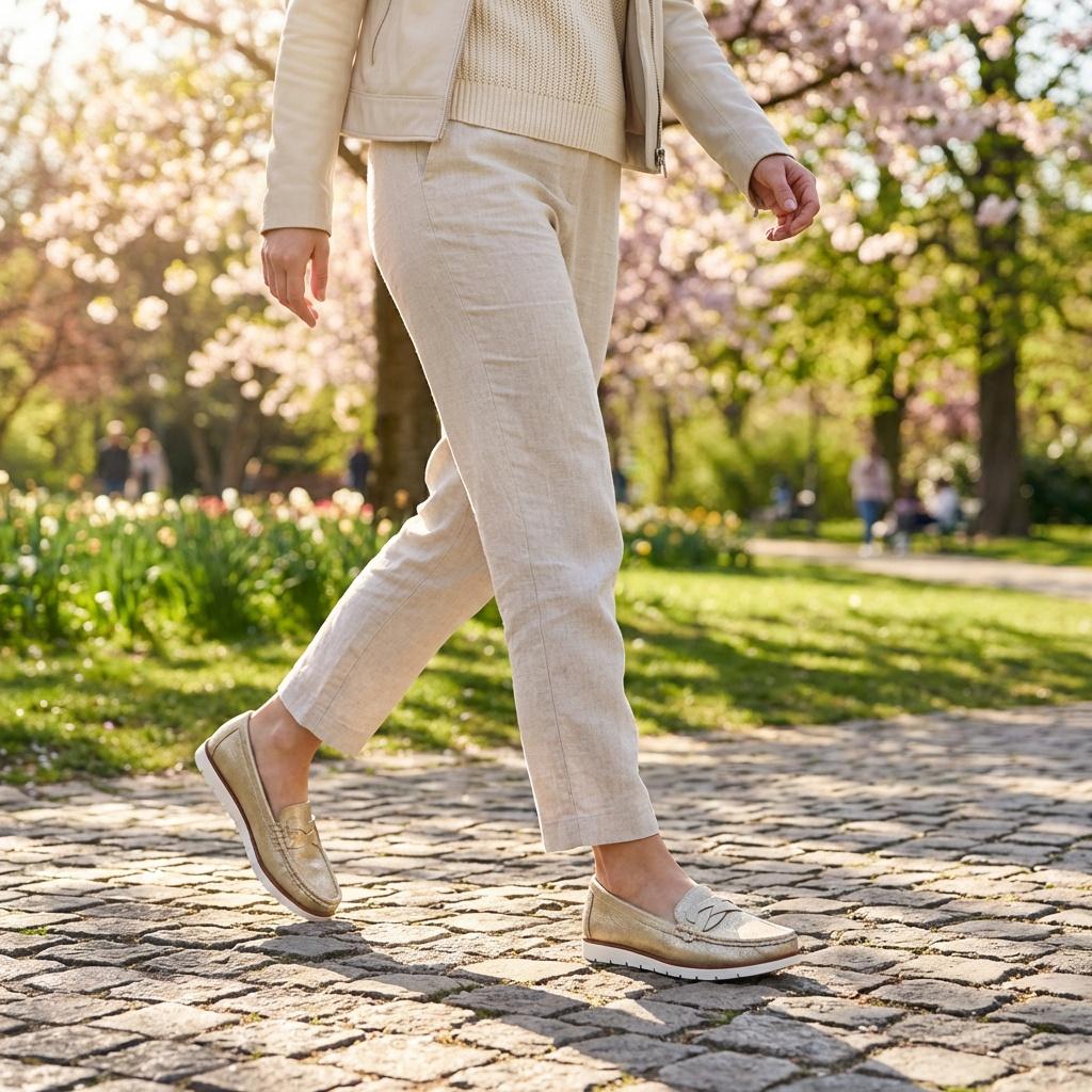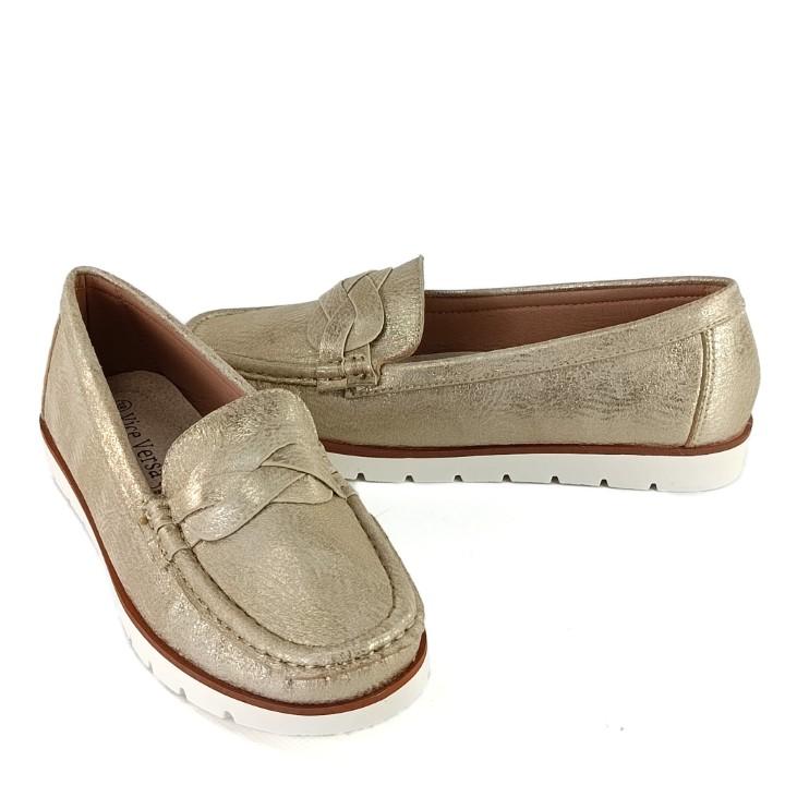 Złote mokasyny damskie