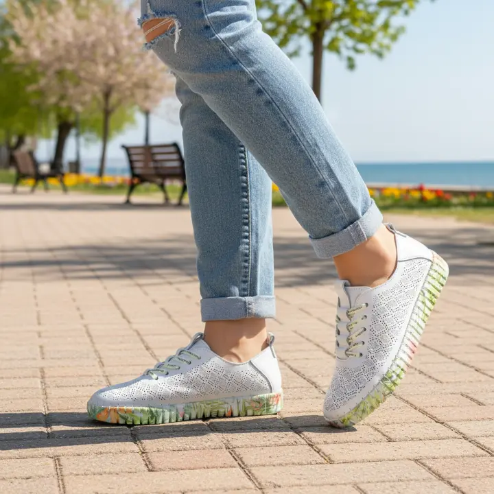 Buty są sznurowane. Modna podeszwa jest lekka, trwała, elastyczna