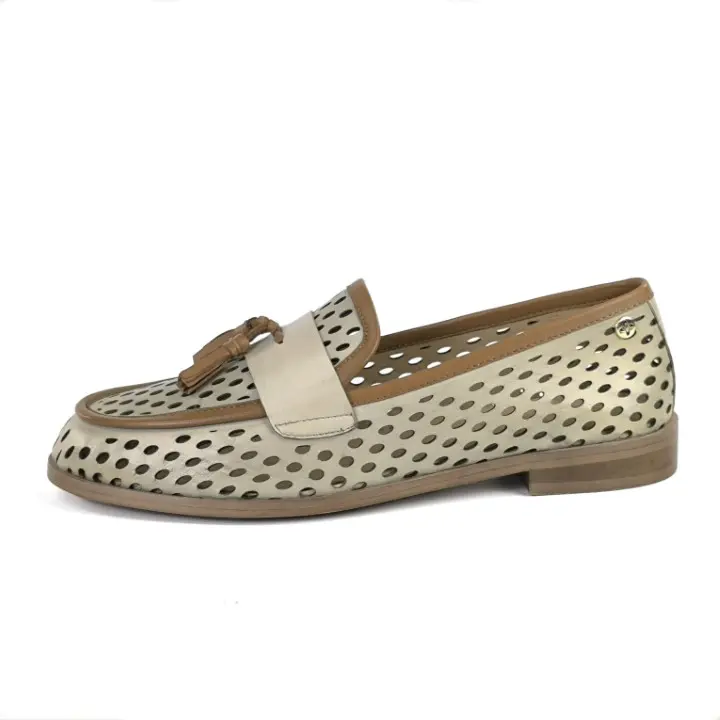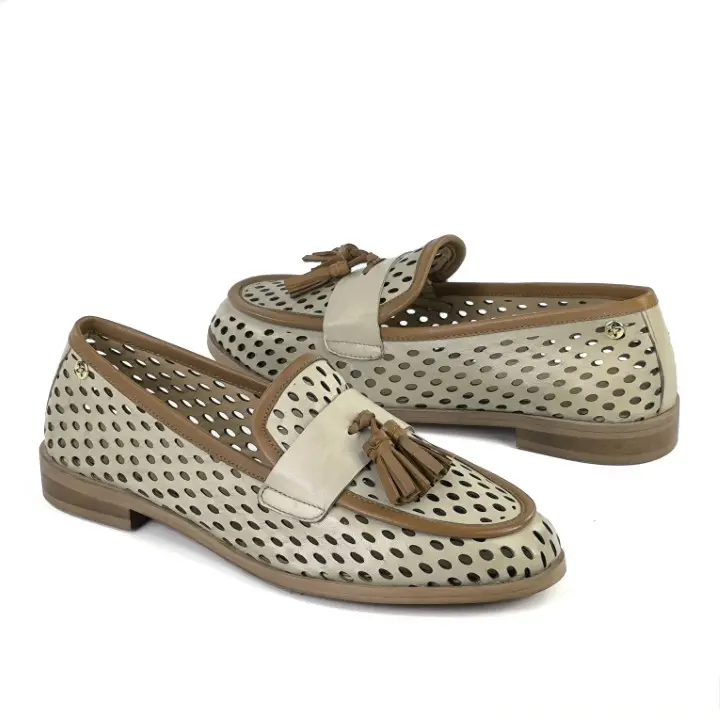 Skórzane, ażurowe mokasyny z frędzlami Maciejka
