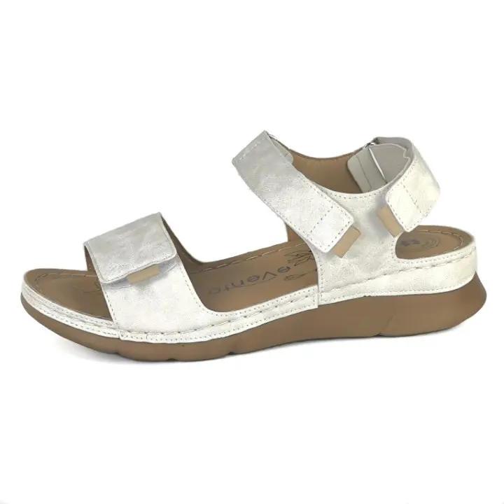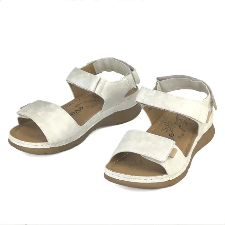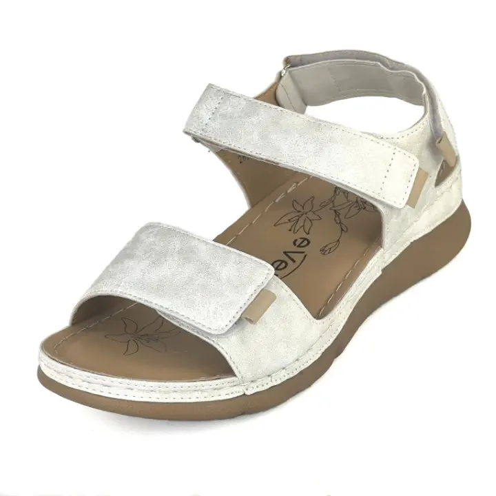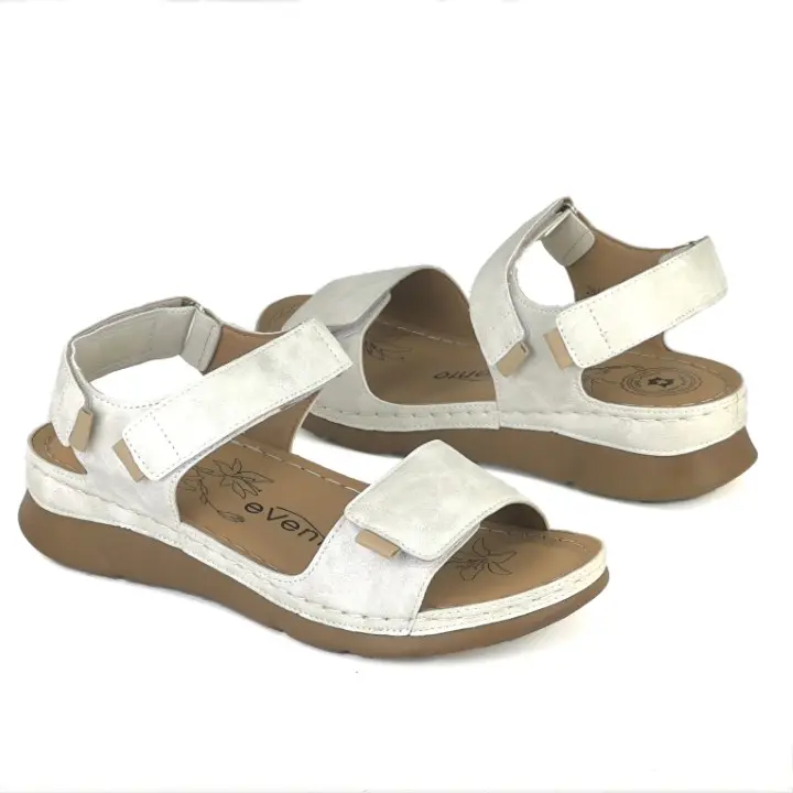Jasno-beżowe, lekkie i wygodne sandały damskie marki Evento. Cholewka wykonana jest z wysokiej jakości i miękkości skóry ekologicznej w kolorze jasnego beżu. Wkładka COMFORT SHOES jest miękka, ze skóry naturalnej. Buty są zapinane na 3 rzepy, aby lepiej dopasować buta do stopy. Stabilny i wygodny klin ma wysokość 4 cm. Podeszwa wykonana z wysokogatunkowego tworzywa, jest lekka i trwała. Idealne sandały na lato, lekkie i komfortowe. Będą pasować do niejednej stylizacji.