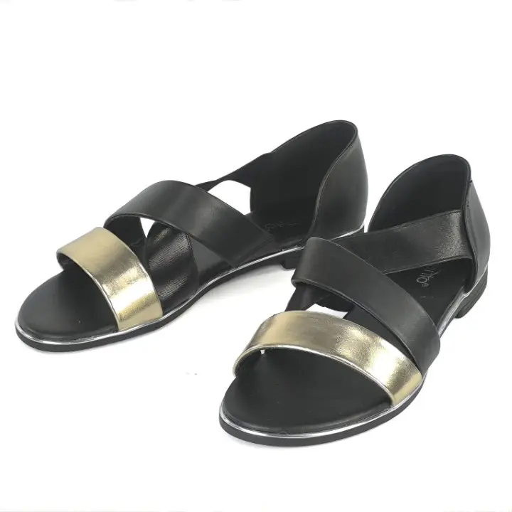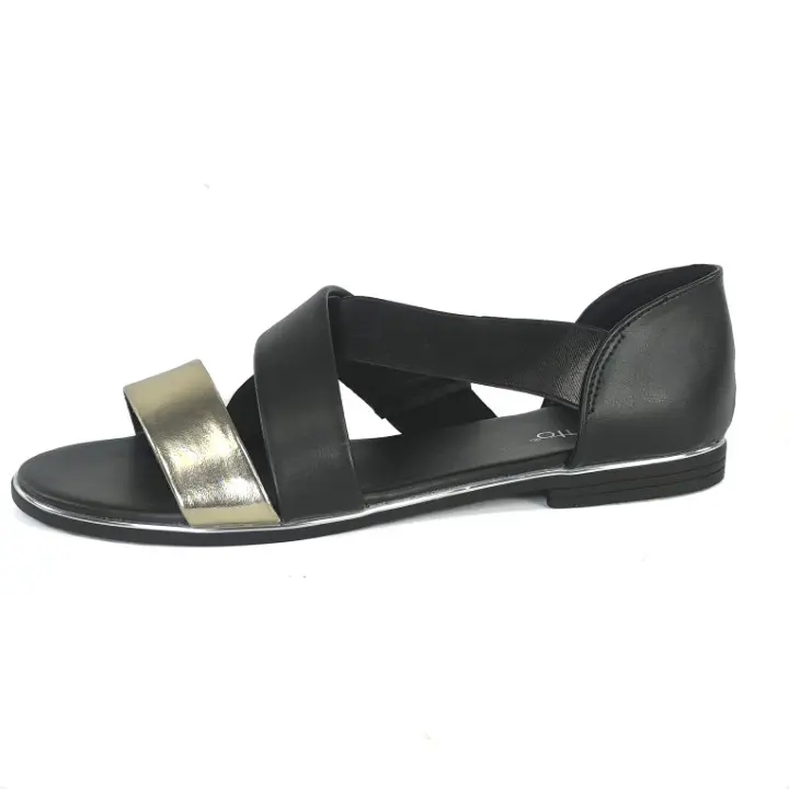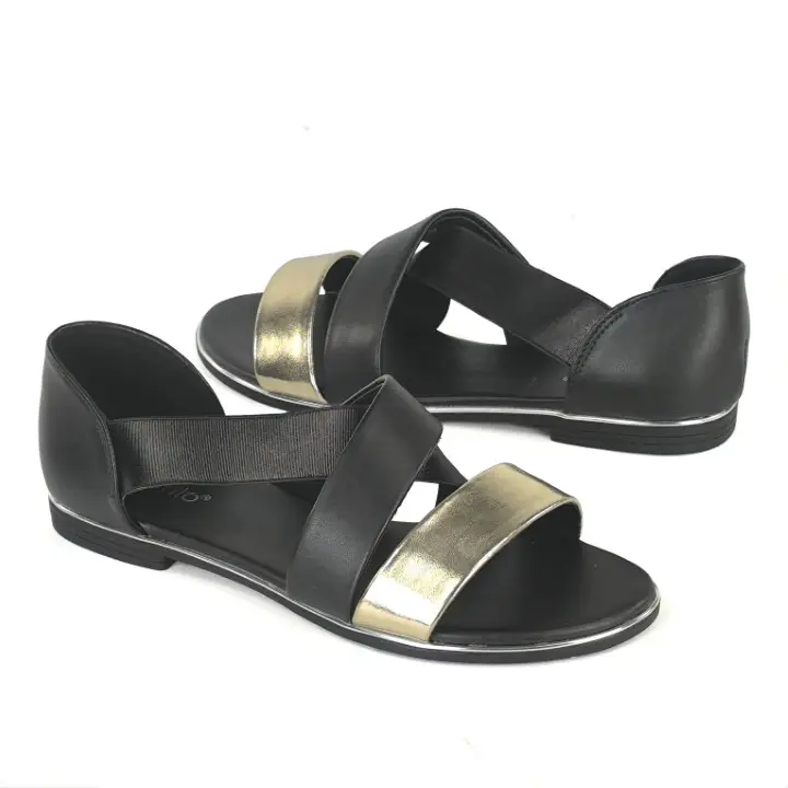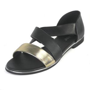 Czarne, modne sandały damskie marki Evento. Cholewka wykonana jest z wysokiej jakości i miękkości skóry ekologicznej i materiału tekstylnego w kolorze czarnym ze złotym paskiem. Wkładka jest miękka, ze skóry ekologicznej. Buty są wkładane, jeden pasek jest cały z czarnej gumy, a drugi ma wstawkę gumy z boku. Stabilny i wygodny obcas ma wysokość 1,5 cm. Podeszwa wykonana z wysokogatunkowego tworzywa, jest lekka i trwała. Uroku dodaje srebrny otok wokół podeszwy i złoty pasek na cholewce. Inspirowane najgorętszymi trendami sezonu, pięknie prezentują się na stopie. Kobiecy styl...