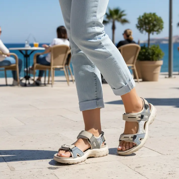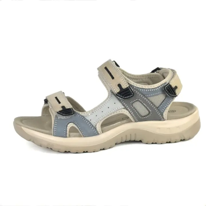 Beżowo-niebieskie, modne i wygodne sandały damskie typu sportowego znanej marki McKeylor. Cholewka jest wykonana z wysokiej jakości skóry naturalnej zamszowej w ładnym zestawie kolorystycznym beżowo-niebieskim. Miękka wkładka jest ze skóry naturalnej. Modna podeszwa jest wygodna, elastyczna i trwała. Wysokość obcasa to 3,5 cm. Buty mają 3 paski regulowane na rzepy, aby lepiej dopasować do stopy. Ponadczasowe i komfortowe sandały sprawdzą się w codziennym użytkowaniu.