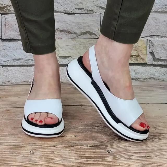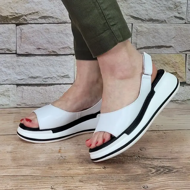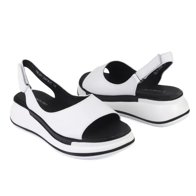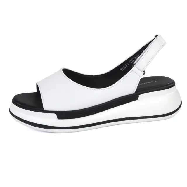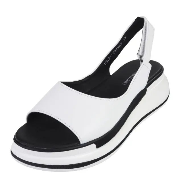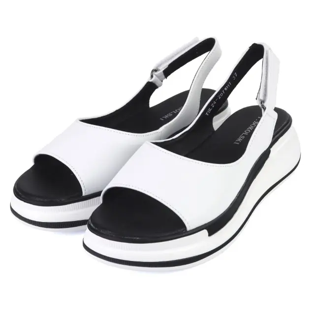 Stylowe i wygodne sandały damskie marki T.Sokolski. Cholewka jest wykonana z wysokiej jakości skóry naturalnej w kolorze białym. Wkładka jest miękka i ze skóry ekologicznej . Modna podeszwa - platforma jest wykonana z wysokogatunkowego tworzywa. Buty są zapinane na rzep z boku. Uroku dodaje dwukolorowa podeszwa. Ponadczasowe i komfortowe sandały sprawdzą się w letnie i upalne dni do wielu stylizacji.