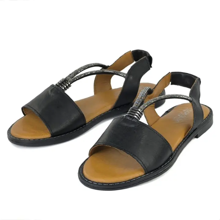 Skórzane sandały damskie z ozdobnym paskiem