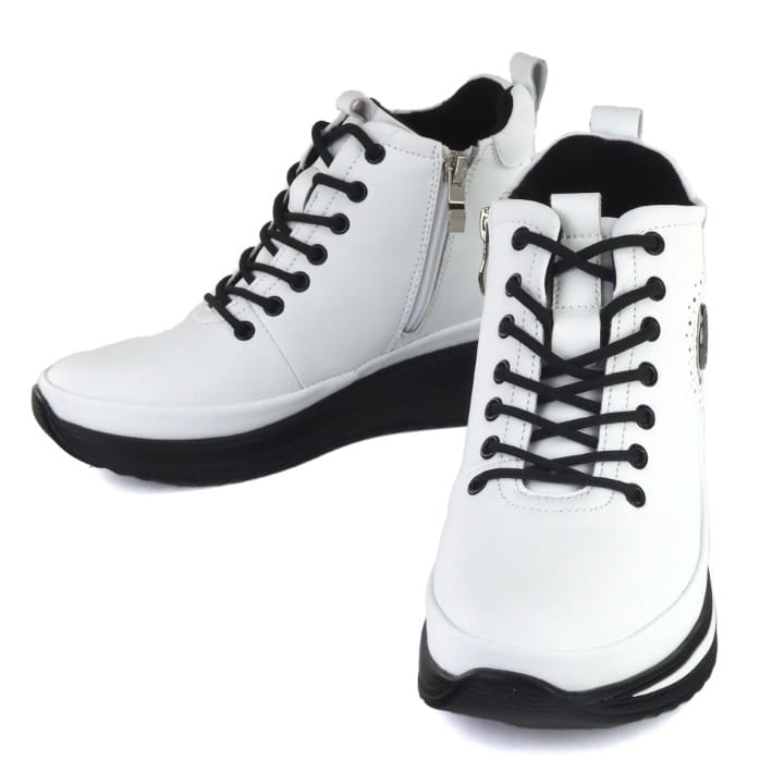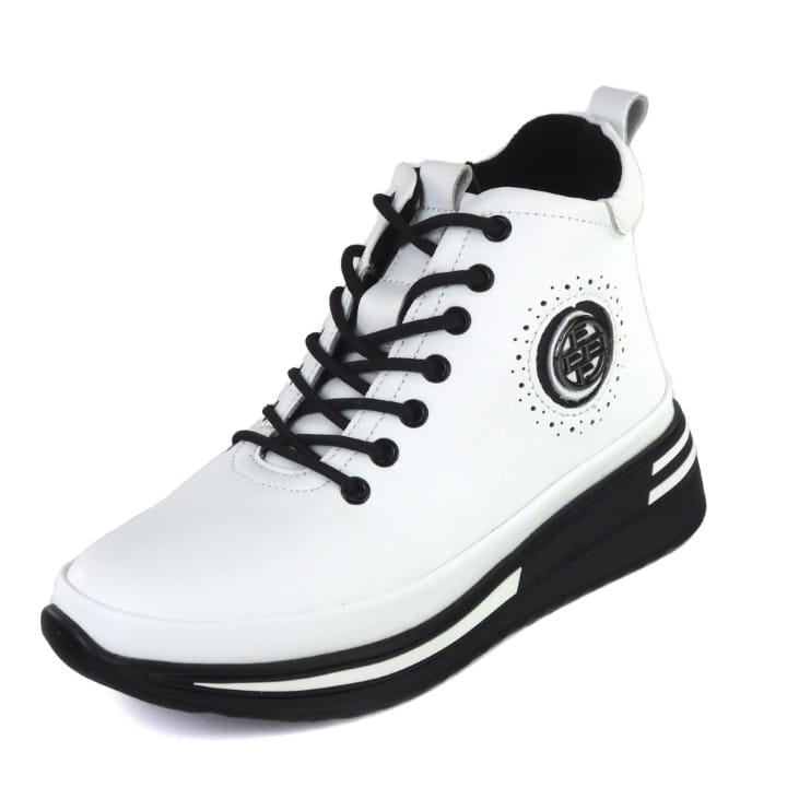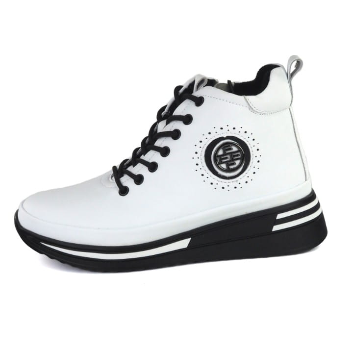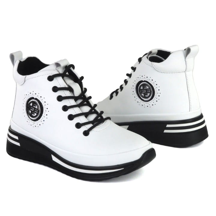 Białe i skórzane trzewiki damskie, znanej firmy Filippo. Cholewka wykonana jest z wysokiej jakości skóry naturalnej licowej w kolorze białym. Buty są sznurowane i mają suwak z boku dla lepszej wsuwalności. Modna, ozdobna podeszwa - platforma jest lekka i trwała i ma wysokość 4 cm. Buty są lekko ocieplone polarem. Ładne, oryginalne wstawki dodają uroku butom. Komfortu dodaje zaokrąglony nosek, miękka skóra i lekka podeszwa. Gustowne i modne trzewiki będą się wyróżniać w wielu stylizacjach.