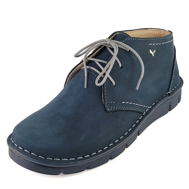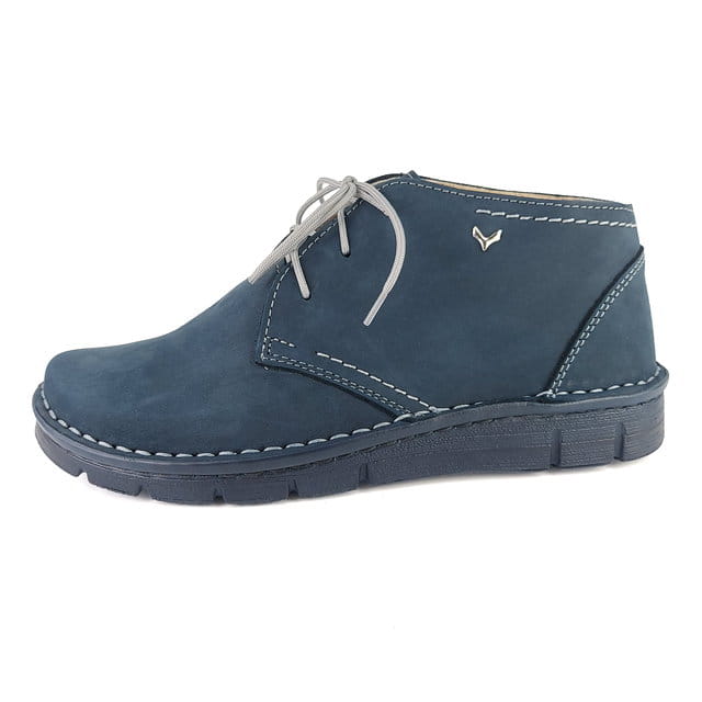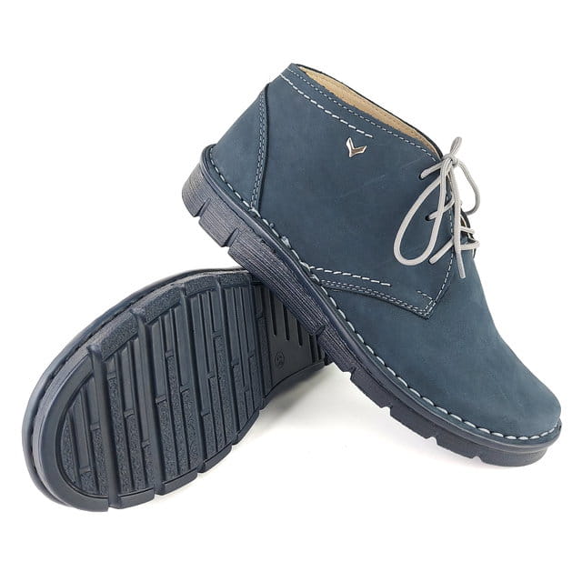 Ponadczasowe nieocieplane trzewiki damskie polskiej produkcji marki Papilion. Cholewka jest wykonana ze skóry naturalnej nubukowej w kolorze granatowym. Wyściółka i wkładka są ze skóry naturalnej. Zaletą trzewików jest miękka cholewka z nubukowej skóry, komfortowa wkładka i elastyczna podeszwa. Idealne na co dzień.