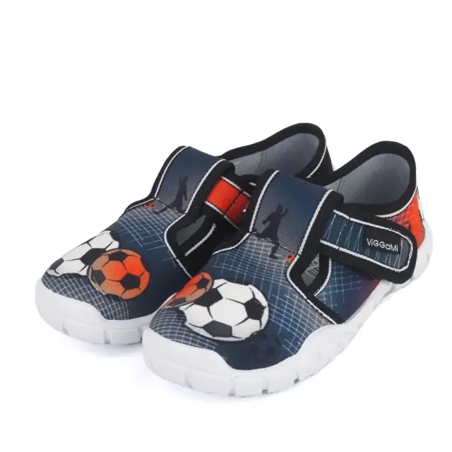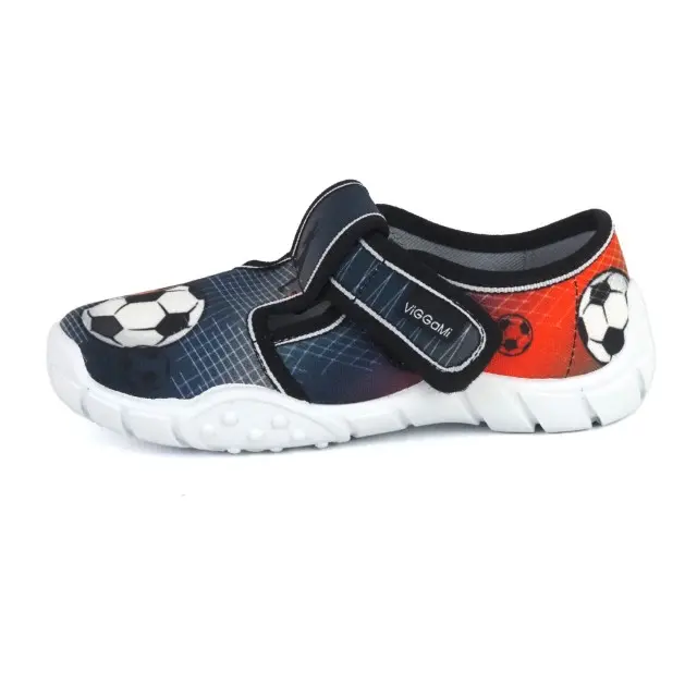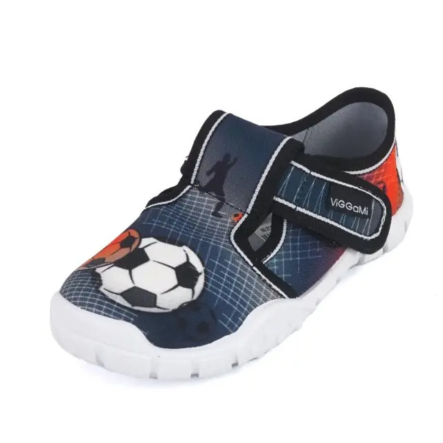 Lekkie i wygodne kapcie znanej polskiej marki Viggami. Cholewka i wnętrze wykonano z wysokiej jakości materiałów tekstylnych, bawełnianych. Usztywniona pięta zapewnia stabilność i bezpieczeństwo podczas użytkowania. Spody lekkie i antypoślizgowe są z odpornego na uszkodzenia i ścieranie tworzywa PCV. Buty mają wyciętą cholewkę i rzep do regulacji. Idealne do domu i do szkoły.