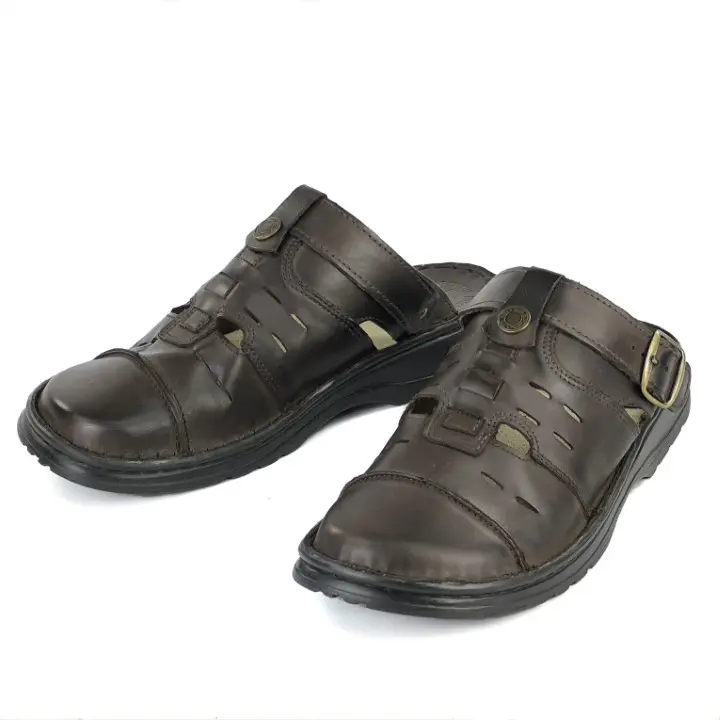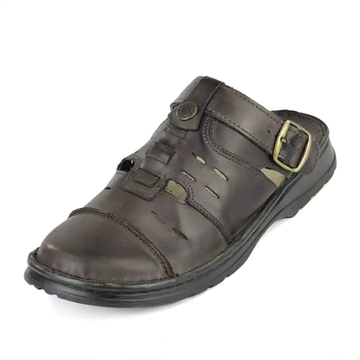 Skórzane klapki męskie z paskiem - sandały