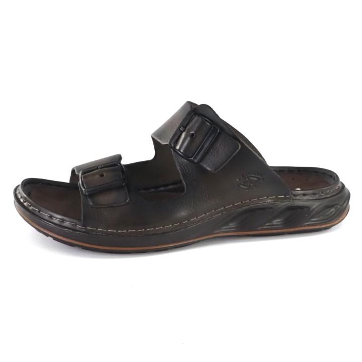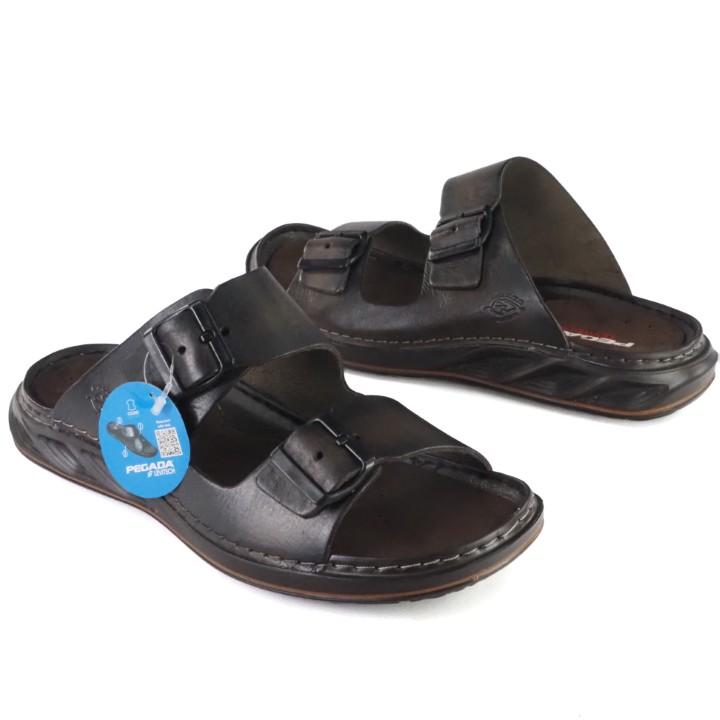 Brązowe. stylowe i modne klapki męskie brazylijskiej marki PEGADA. Cholewka wykonana z wysokiej jakości i miękkości skóry naturalnej w pięknym kolorze przecierany brąz. Komfortowa, miękka wkładka wyłożona jest specjalnym materiałem wykonanym z mikrofibry, podnosi komfort, zapobiega nadmiernej potliwości. W podeszwie zastosowano system technology - Levitech dzięki czemu obuwie jest wyjątkowo lekkie. Buty mają dwa szerokie paski regulowane, zapinane na klamerki. Wygodne i stylowe klapki sprawdzą się w codziennym użytkowaniu. SUPER LEKKIE