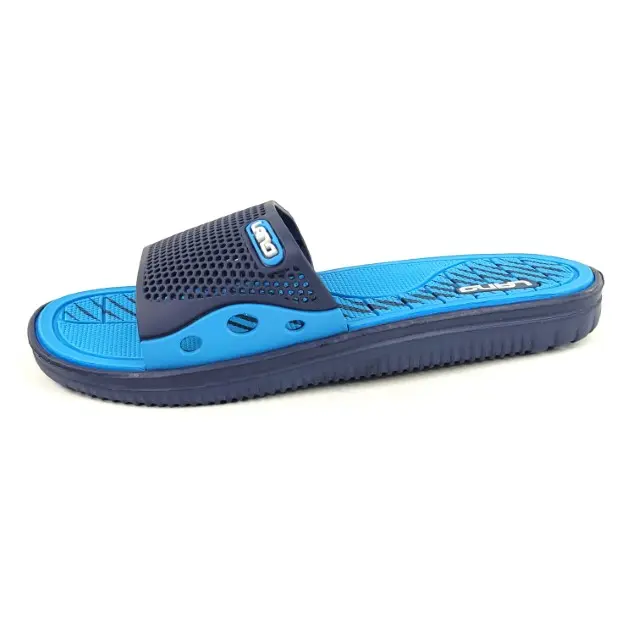 Stylowe klapki młodzieżowe marki Lano. Cholewka jest ażurowa z tworzywa. Podeszwa wykonana jest z gumy, a wkładka z miękkiej pianki. Klapki są lekkie, wygodne i idealnie leżą na stopie. Uniwersalne na basen, plażę, do ogrodu i pod prysznic. Klapki są w ładnym zestawie kolorystycznym granatowo-niebieskim.