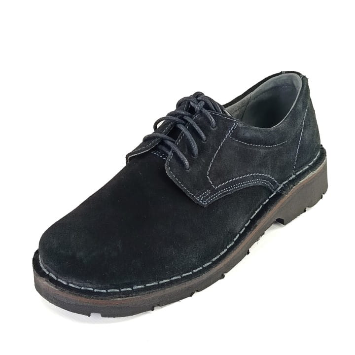 Czarne, stylowe i wygodne półbuty męskie, polskiej produkcji, znanej marki HELIOS. Cholewka wykonana z wysokiej jakości i miękkości skóry naturalnej welurowej w kolorze czarnym. Wkładka jest miękka i skórzana. Podeszwa jest elastyczna, trwała i modna ,montaż klejono-szyty. Buty są sznurowane. Tęgość G. Lekkie i komfortowe obuwie sprawdzi się w codziennym użytkowaniu do różnych stylizacji.