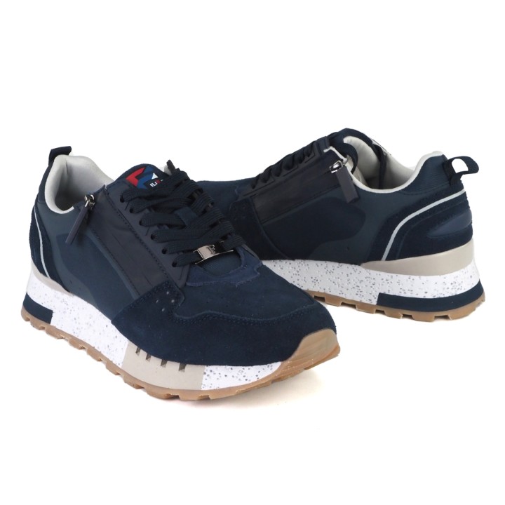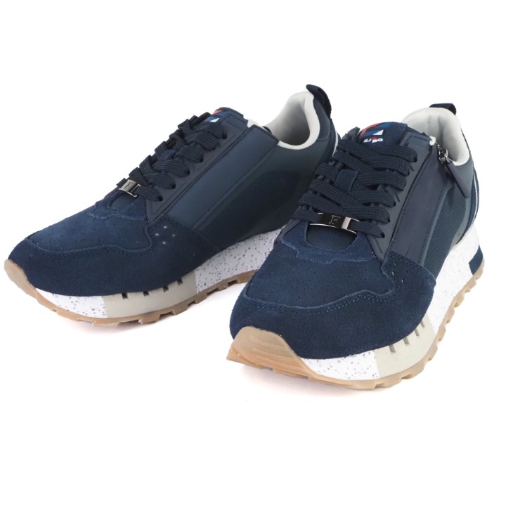 Granatowe, modne i wygodne półbuty - sneakersy męskie typu sportowego znanej marki Filippo. Cholewka wykonana jest z wysokiej jakości i miękkości skóry naturalnej zamszowej, materiału tekstylnego i skóry ekologicznej w kolorze granatowym. Wyściółka i miękka wkładka są z materiału tekstylnego. Buty są sznurowane i mają suwak z boku. Komfort użytkowania zapewnia zaokrąglony nosek oraz lekka podeszwa. Modna podeszwa platforma jest lekka i trwała. Ciekawe wstawki i stylowa podeszwa zwiększają atrakcyjny wygląd. Inspirowane najmodniejszymi trendami sezonu, idealnie sprawdzą się w codziennym użytkowaniu. Będą pasować do wielu stylizacji.