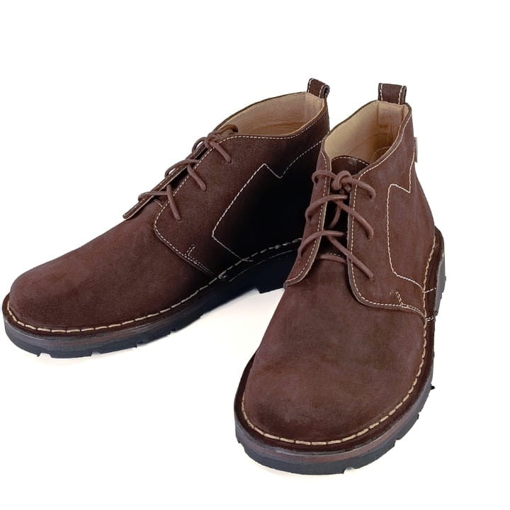 skóry naturalnej, welurowej w kolorze brązowym. Wnętrze wykończono