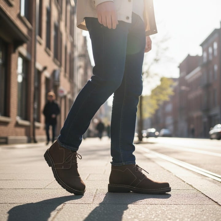 Komfort chodzenia zapewnia zaokrąglony nosek i skórzana wkładka. Buty