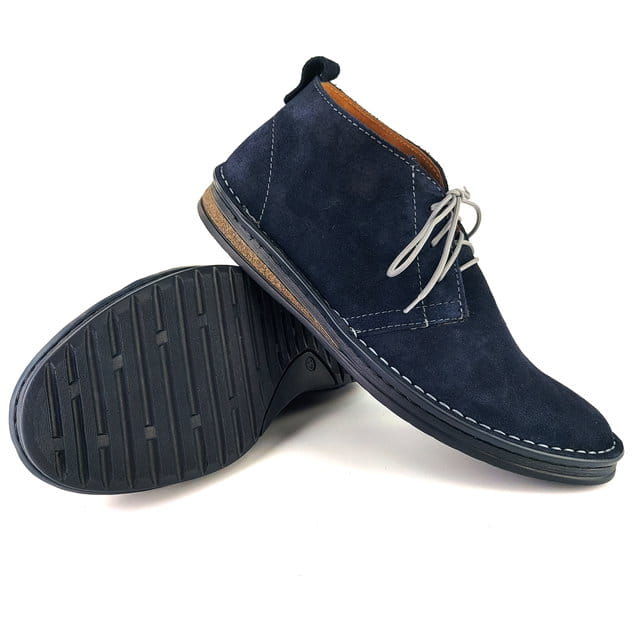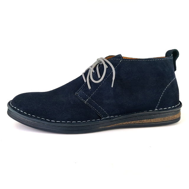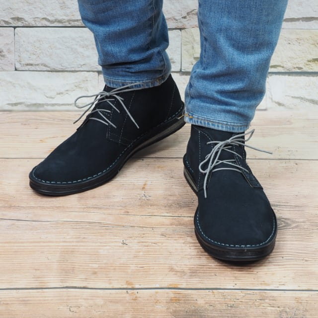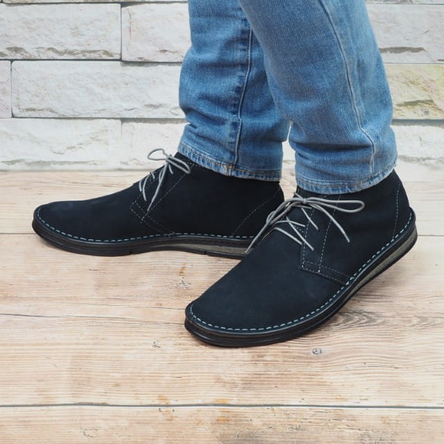 Granatowe i komfortowe trzewiki męskie polskiej produkcji marki PAPILION. Cholewka wykonana jest z wysokiej jakości i miękkości skóry naturalnej, welurowej w kolorze granatowym. Wygodna podeszwa jest elastyczna, miękka i lekka. Wyściółka to połączenie skóry naturalnej i materiału tekstylnego. Wkładka jest wyjmowana. Buty są sznurowane. Dwukolorowa podeszwa i ładne, jasne przeszycia dodają uroku. Klasyczne i ponadczasowe trzewiki męskie idealne do codziennego użytkowania w casualowym stylu.
