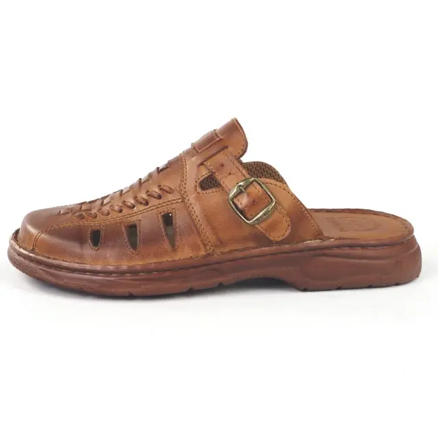 Brązowe, ponadczasowe i wygodne klapki męskie polskiej produkcji marki Łukpol. Cholewka jest z wysokiej jakości skóry naturalnej licowej w kolorze brązowym. Buty mają miękką i skórzaną wkładkę. Podeszwa jest komfortowa i elastyczna. Pasek na cholewce jest regulowany. Buty są ładnie plecione i mają delikatne wycięcia. Idealne klapki od wiosny do jesieni. Sprawdzą się w codziennym użytkowaniu.