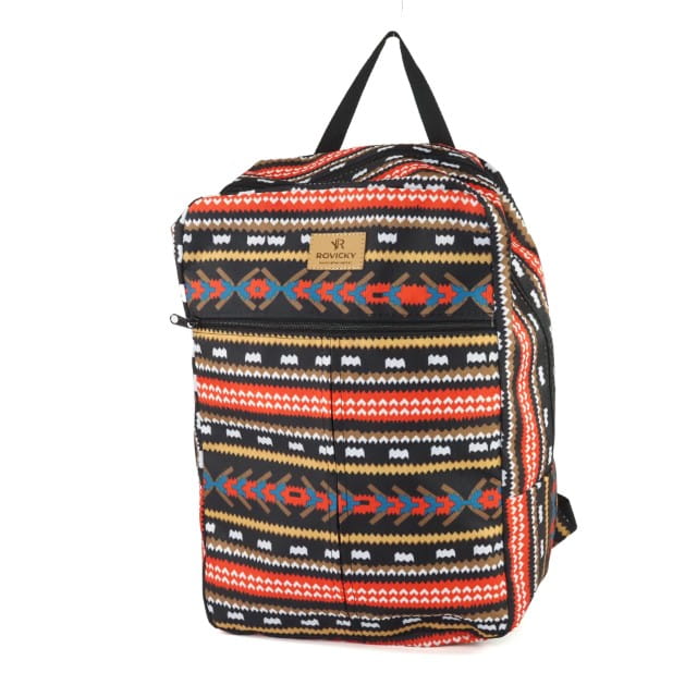 Kolorowy plecak podróżny marki Rovicky. Wykonany z wysokiej jakości materiału - poliester w kolorowe paski. Zapinany jest na suwak. Posiada 1 główną, dużą komorę. Z przodu jest 1 kieszeń na suwak. Wyposażony jest w regulowane szelki o szerokości 4,5 cm. Dzięki wymiarom- wysokość 40 cm, szerokość 25 cm i głębokość 20 cm jest to idealny plecak zarówno na krótkie wycieczki czy codzienne użytkowanie. Na tylniej stronie plecaka znajduje się uchwyt, który zaczepisz o walizkę. Wymiary tego plecaka dość często pasują jako wymiary bagażu podręcznego do niektórych linii lotniczych. Idealny plecak na każdą okazję.